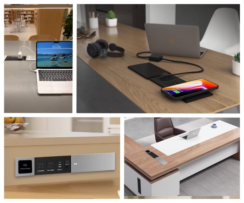 Designed for ​​Space Cleaning​​, this integrated solution combines multi-function sockets and customizable power modules. It effortlessly replaces large power strips and tangled extension cords, solving the problem of powering multiple devices simultaneously. The ​​bottom box hides seamlessly into the table​​, enabling a ​​flush mount installation​​ that keeps desks, worktops, and furniture surfaces impeccably tidy and clutter-free.